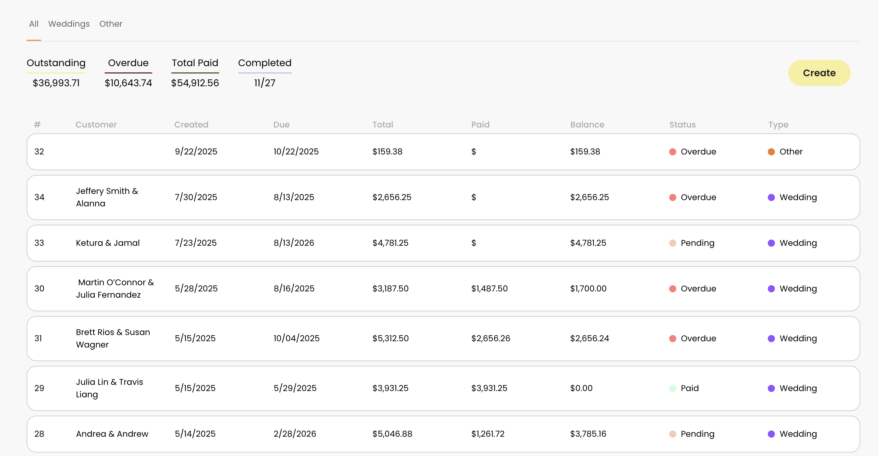 Create scheduled payment plans (e.g., 25% Deposit, 25% Interim, 50% Final). We automatically remind clients when a payment is due.